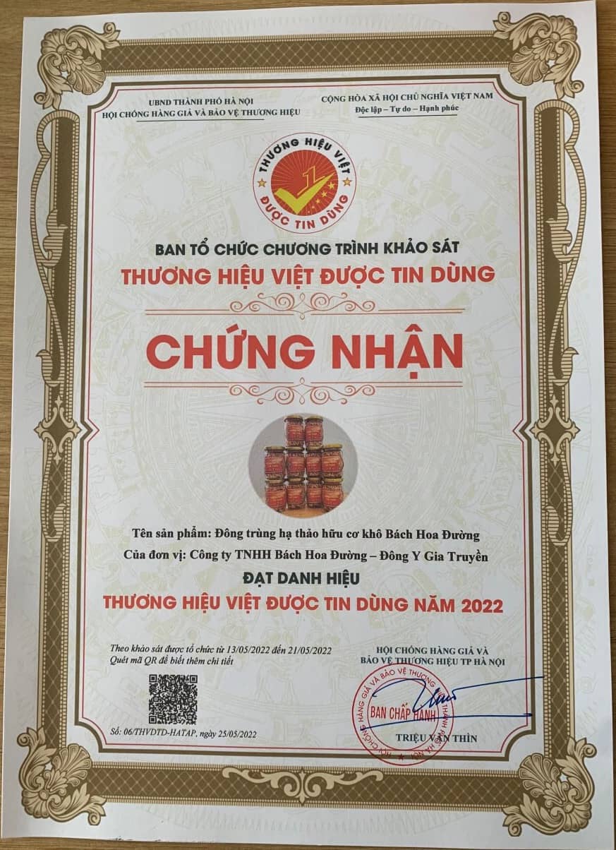 • Sản phẩm: Đông Trùng Hạ Thảo nuôi cấy (Cordyceps Militaris) sấy khô của Bách Hoa Đường